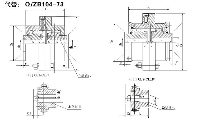 CL型齿式联轴器的参数及主要尺寸:(JB/ZQ 4218-86) mm