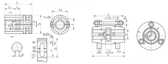 JJQ型紧箍夹壳联轴器主要尺寸:mm